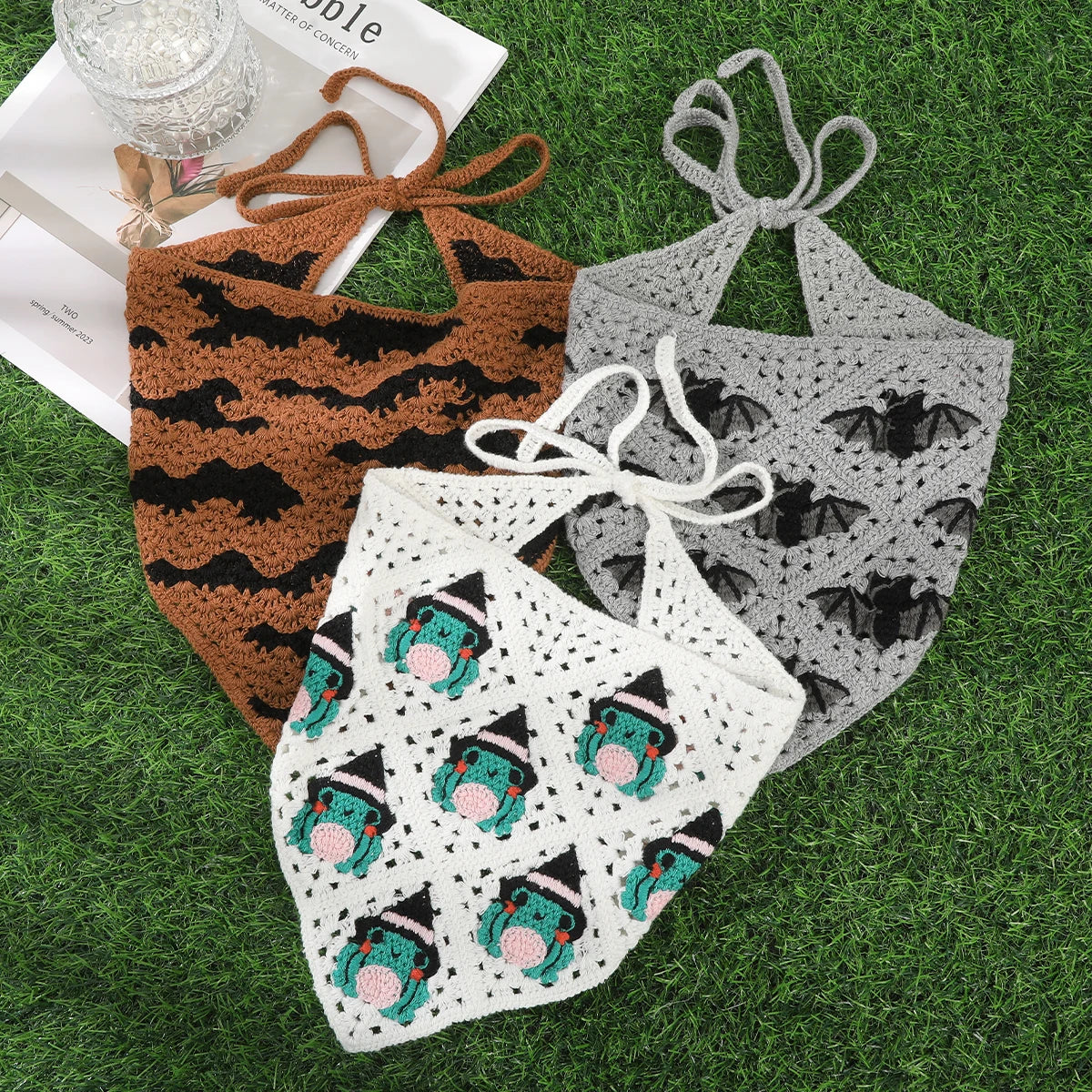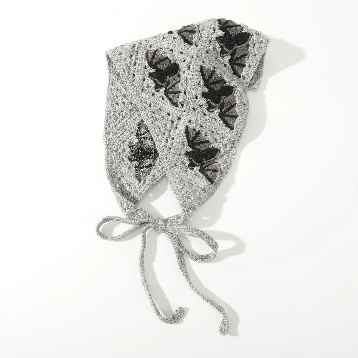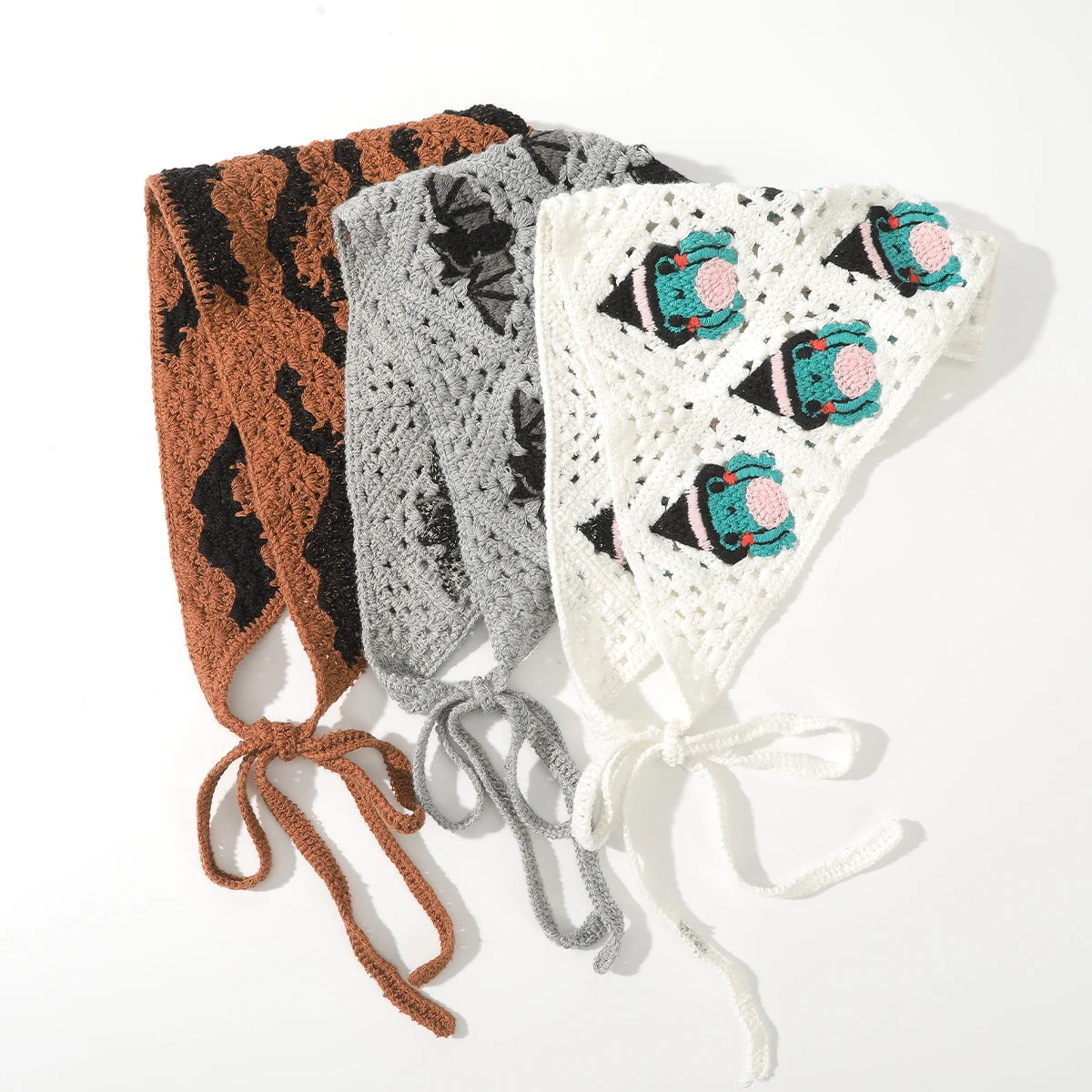 AWAYTR Halloween Crochet Hollow Triangle Headband Korean Handmade Small Bat Frog Shadow Hairband Strap Headscarf Women Headwear